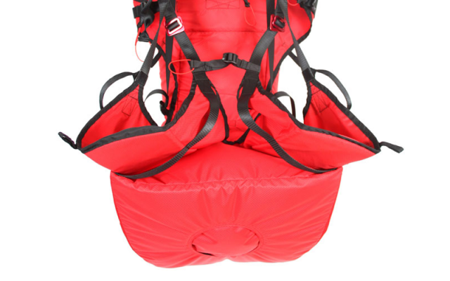 It is equiped with comfortable handles that help the passenger sit into the harness and hook@loop for pilot’s instrument. You can easily put a harness, a helmet and additional equipment into the rucksack, that allows to divide the weight between pilot and passenger if you need to walk to the take off or after the landing.
